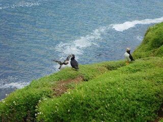 The Puffins are very tolerant of our presence and readily return to their burrows as soon as the net is taken down.